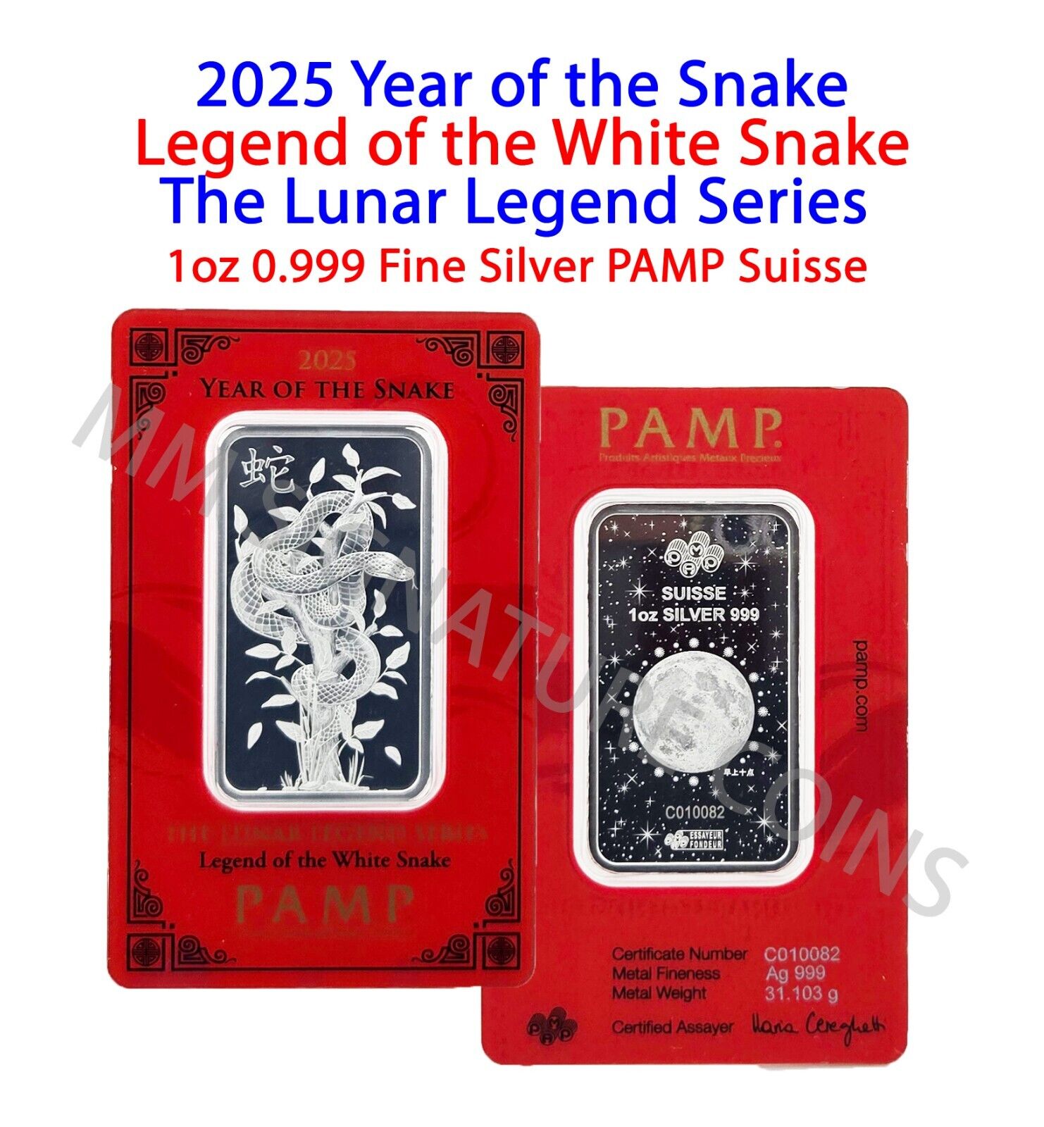 • 2025 Pamp Suisse 1 oz 999 Fine Silver Bar Year Of The Snake Lunar Legend Series