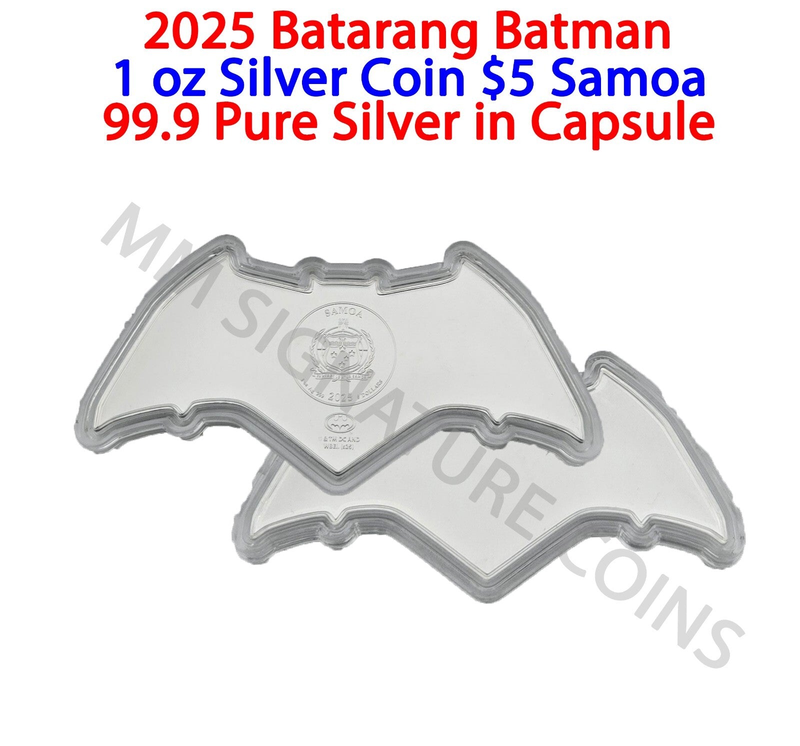 • 2025 1 oz .999 Silver Official Batman Batarang Shaped Coin BU Samoa $5 w capsule